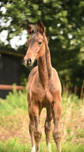 Zum Verkauf steht ein sportlich aufgemachtes Hengstfohlen, geboren am 06.05.2025, mit herausragender Abstammung. Abstammung: United Pleasure x Contendro I x Cristo x Cassini Dieses vielversprechende Fohlen steht klar im modernen Hengsttyp und bringt alles mit, was man sich von einem zukünftigen Sportler und möglichen Hengstanwärter wünscht: Ausstrahlung, Dynamik und ein korrektes Fundament. Sein Vater United Pleasure war Landeschampion der 4-jährigen Springpferde beim Holsteiner Verband und überzeugt nicht nur durch Eigenleistung, sondern auch durch eine sporterprobte Blutführung. Auch die mütterliche Linie lässt keine Wünsche offen – über Contendro I, Cristo und Cassini I vereint sie bewährte Leistungsgenetik für Springen und Vielseitigkeit. Aus der Mutterlinie entstammt unter anderem die Stute Charmonie, die mit Pia Reich bis 1,55m erfolgreich unterwegs war.
