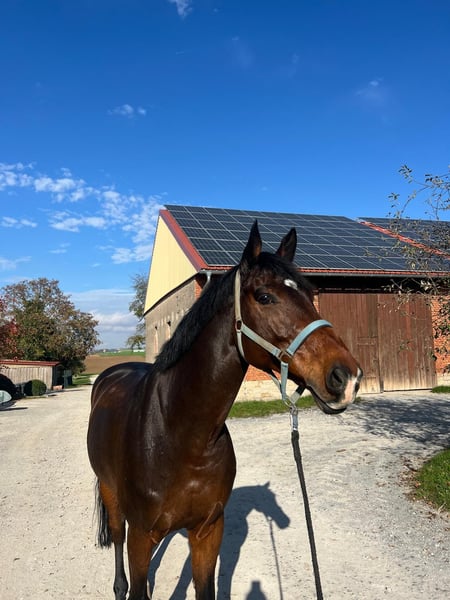 Our 10-year-old gelding Quentendro VA, sired by Quintago x Contendro I, with a height of 16.8 hh, is looking for a new home as I am no longer able to meet his needs due to personal circumstances. He is very well-behaved both in handling and under saddle, making him suitable for riders of all levels. Whether jumping, dressage, or hacking, he is versatile and willing. He has placements in show jumping up to L level and has been trained at the same level in dressage. If you are genuinely interested, please feel free to contact me via WhatsApp at 0173/2734246. A recent health check from 2021 is available, and he has had no injuries since then.
