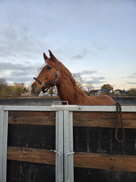 Zum Verkauf steht hier ein 12jähriger Holsteiner Wallach von Clarcon. Er ist menschenbezogen, geht brav ins Gelände und zum Schmied und ist im allgemeinen Umgang einfach unkompliziert. Hervorzuheben ist seine tolle Arbeitseinstellung. Er ist immer motiviert und möchte gefallen. Obwohl er noch nicht öffentlich vorgestellt wurde, kann ich ihn mir aufgrund dessen als tollen Sportpartner für den A-Bereich vorstellen. Aufgrund seiner Größe von ca. 1,70m und seines Charakters, könnte er eventuell auch ein gutes Voltipferd sein. Dies wurde jedoch noch nicht ausprobiert. Verkauft wird er nur, da sich die Besitzer umorientieren möchten. Weitere Bilder und Videos auf Anfrage.