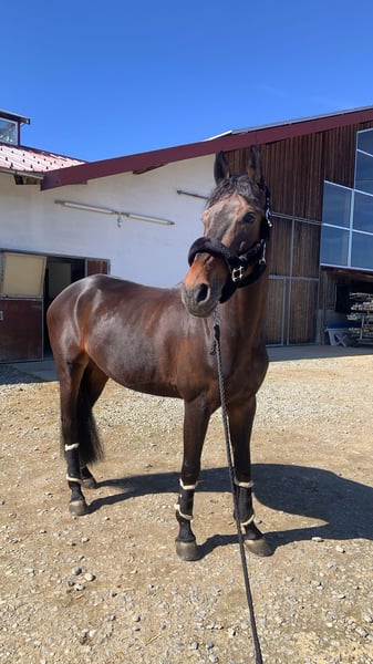 For sale: a handsome, expressive Holsteiner gelding born in 2014. He stands at 17.5 hh and has been trained up to elementary level in show jumping. Our gelding impresses with his friendly nature and affectionate demeanor. He is well-behaved both in the field and on the arena. Due to his strong character, he is not suitable for beginners but ideal for an experienced amateur rider seeking an ambitious partner. With his attractive conformation and three good basic gaits, he is the perfect partner for show jumping and versatile leisure riding. He has also gained experience in dressage and is open to new challenges. After a longer break, he is now fully fit again and ready to start exciting new adventures with his future rider. Please feel free to contact us with any questions. The gelding is well-mannered and easy to handle, and he is offered into caring hands. To prevent riding tourism, a trial ride fee of €30 will be charged, which will be credited towards the purchase if successful.