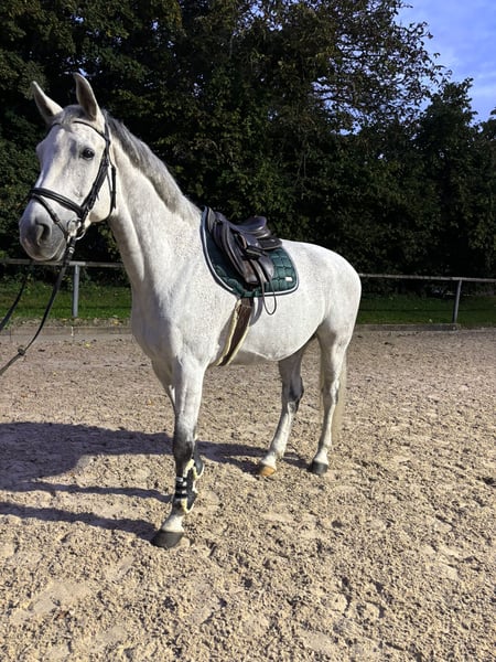 The Aichwald Riding Club is parting ways with its 14-year-old Holsteiner gelding, Cobold. Cobold is an experienced gelding from our riding school, who is now to be entrusted to loving hands. He is characterized by his friendly demeanor with children and is well accustomed to the daily school operations. Although Cobold is not a pure beginner's horse, he is excellently suited for riders who already have experience and can provide him with the necessary exercise and attention. Cobold has been placed up to L-level show jumping and can certainly reconnect with previous successes through appropriate training. He has a roach back, which has been X-rayed by a veterinarian and does not restrict him in any way. If desired, Cobold's equipment can also be purchased for an additional fee. We look forward to placing Cobold in loving hands!