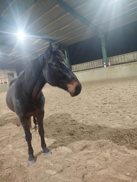 Connex ist ein sehr braves und ruhiges Pferd. Er geht ganz entspannt ins Gelände, auf den Platz und in die Halle. Er steht bei uns im Offenstalll und wird zur Zeit von einem 14-jährigen Mädchen geritten. Er wurde bei uns als Voltipferd genutzt, was aufgrund seiner Arthrose nun leider nicht mehr möglich ist. Daher ist er als Freizeitpferd abzugeben. Durch seine Zeit als Voltipferd ist er auch im Umgang mit Kindern sehr brav.