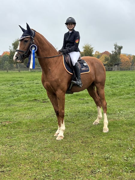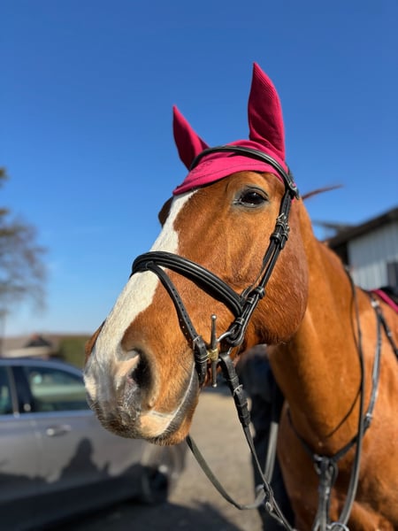 Cocsyn ist ein 15-jähriger Fuchswallach (ca. 170cm) mit Aussdruck und Ausstrahlung. Abstammend von Casido x Cardino bringt er gute Springpferde-Gene und viel Erfahrung mit. Er kann Platzierungen bis 130cm vorweisen -zuletzt mit meiner 12-jährigen Tochter im M* den 4. Platz. Cocsyn ist ein Pferd mit Vermögen und Herz ,das im Parcours stets motiviert ist. Er ist kein Pferd, das einem alles schenkt - er braucht eine/n Reiter/in der ihm Sicherheit,Vertrauen,eine kosequente Reitweise und Struktur gibt, hilft er mit und zeigt, was in ihm steckt. Im Umgang ist Cocsyn ein echter Schatz -verschmust, menschenbezogen und freundlich ( wie ein Riesen Baby). Er ist täglichen Weidegang gewohnt mit Boxenhaltung. Er hatte bei uns und bei der Vorbesitzerin keine Erkrankungen und Verletzungen. Platz vor Preis! Bei Fragen und Interesse gerne melden:) 01776060665