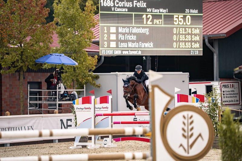 Nel percorso tra i colorati ostacoli, Felix si sente a casa. Allora si illumina e mostra tutta la sua motivazione. Nella gestione, Felix è sempre calmo, nulla lo turba facilmente. Carica il trailer senza problemi, si comporta bene dal maniscalco e dal veterinario ed educa i nostri giovani con una dolce fermezza nel paddock. Felix conosce la vita in branco nel paddock, così come quella in box. Per una passeggiata rilassata al passo o anche per un giro sportivo al galoppo attraverso il bosco, Felix si lascia volentieri convincere. Ma ciò che ama di più è saltare con un fresco slancio, che bisogna lasciargli, e con una visione e velocità che fanno battere il cuore. Chi vuole essere in testa nel barrage ha trovato il partner ideale in Felix. Chi desidera conoscere personalmente Felix o avere ulteriori informazioni, può scrivere volentieri un WhatsApp o un SMS in anticipo!