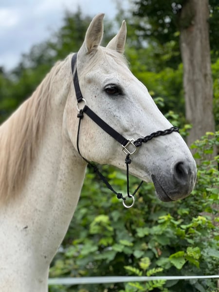 Kalle is a 2009-born Holsteiner gelding (gray, approximately 17.1 hh), sired by Cassini II out of U-Constante. He has competed in show jumping in the past, with his last outing in 2016. As far as known, he is healthy; I have not had a recent veterinary examination or AKU performed. In daily handling, Kalle is quite a character: he can be somewhat dominant but is fair, reliable, and never malicious. He is easy to shoe, though loading requires patience; he will go in, and he is familiar with groundwork and desensitization training. He is capable of going alone from the stable and handles many situations confidently. He particularly enjoys groundwork, where he is motivated, attentive, and eager to learn, often observing others and seeking engagement. Under saddle, Kalle exhibits behaviors that require understanding and realistic assessment. He has learned how to avoid work and sometimes uses this to his advantage. When he becomes tired or under pressure, he may react with resistance and cease cooperation—up to and including a well-practiced disobedience. This is not panic or aggression but very deliberate. He has not shown this behavior when led, and I cannot speak for lunging work with certainty. Anyone seriously interested in riding him must have extensive experience, patience, clarity, and a fine sense for such horses. He is definitely not suitable for beginners or children, nor as a beginner or transition horse for teenagers or similar. I can imagine Kalle as a companion horse, provided he is regularly engaged with through groundwork or handwork. A grooming or handling partnership would be perfectly fine. Most importantly, he needs a home where he can stay long-term. Due to his history, he should no longer be treated as a temporary project or a "wandering trophy." I am only offering him as a permanent partner. I do not want someone to try him out and then return him if things don’t work out—that would not be fair to him. Kalle is accustomed to both paddock and box stall housing, lives peacefully in mixed herds, and is very socially compatible. Currently, he even acts as a protector for my pony. Location: Raum 37130, but a move could be arranged.