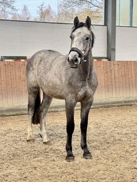 Gut Oersdorfs Cano ist ein dreijähriger Wallach aus eigener Zucht. Er ist artgerecht aufgewachsen und selbstverständlich regelmäßig geimpft, entwurmt und dem Schmied vorgestellt. Er ist altersgemäß noch roh, zeigt sich aber bereits im täglichen Umgang sehr brav und ist bereit für weitere Aufgaben. Auf den Videos sieht man ihn bei seinem ersten Freilaufen in der Halle. Abstammungsgemäß bewegt er sich mit drei guten Grundgangarten, wobei besonders der Gallop hervorzuheben ist. Canos Pedigree ist sowohl für den anspruchsvollen Freizeitreiter vielversprechend, lässt aber auch das Springreiterherz höher schlagen. So war sein Vater Reservesieger seiner Hengstleistungsprüfung mit sehr guter Dressur-, Spring- und auch Vielseitigkeitsbenotung. Seine Mutter kann Erfolge im Springen bis zur Klasse L vorweisen. Cano hat an der linken Wange und im Stirnbereich eine Muskelatrophie mit unbekannter Ursache, wodurch er teilweise ungleich kaut. Dadurch benötigt er eine regelmäßige Zahnkontrolle. Röntgenbilder des Kopfes und des Kiefergelenkes liegen ohne Befund vor. Weitere Informationen gerne auch telefonisch unter 01739171091.