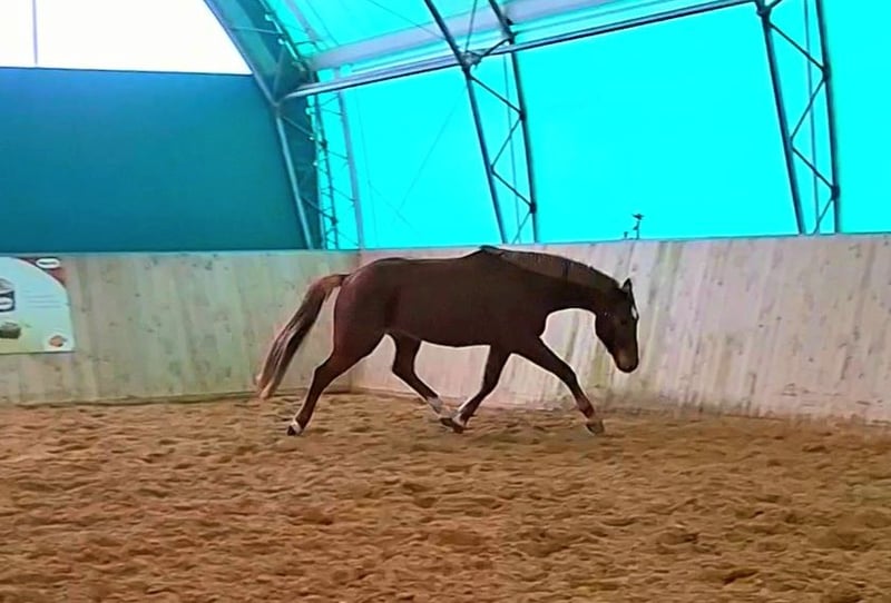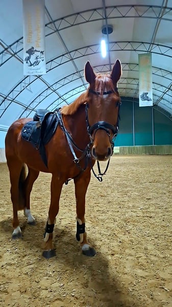 Zum Verkauf steht ein qualitätsvoll gezogener 4-jähriger Wallach mit einem aktuellen Stockmaß von ca. 1,64 m (noch im Wachstum). Er ist bereits schonend angeritten und überzeugt durch seine Rittigkeit, Lernbereitschaft sowie seinen ausgeglichenen Charakter. Erste Sprünge aus dem Trab und Galopp absolviert er souverän, mit guter Übersicht und viel Vermögen. Besonders hervorzuheben sind seine natürliche Springveranlagung sowie seine positive Einstellung zur täglichen Arbeit. Ein vielversprechendes Nachwuchspferd für den Springsport. Bei interesse, sowie weitere Videos etc. gerne anrufen oder per WhatsApp 015206609392