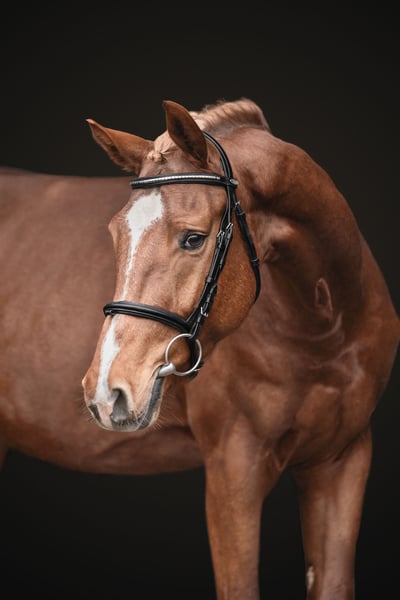 Lenon, coming 4y old Livelo x Con Cosmos Holsteiner gelding. Lenon is fancy chestnut with flaxen mane and tail, despite to his look, hes a lovely mover and very tallented jumper. Lenon has a blood and shows great quality over jump. Started under saddle last autumn. Lenon is easy to handle and has no vices.