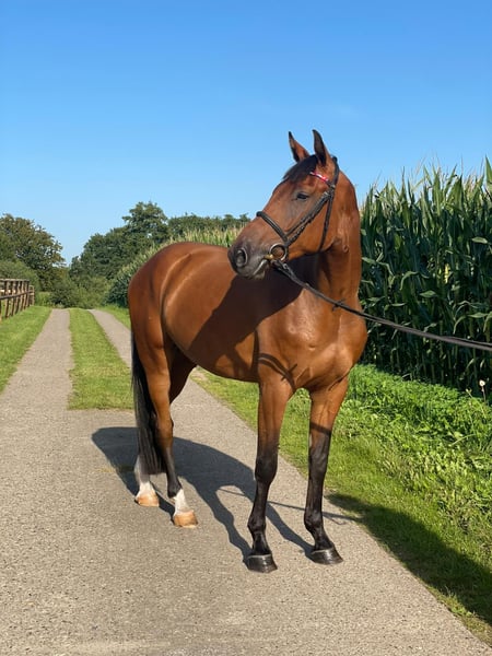 Zum Verkauf steht „Coda C“, ein 4 jähriger Holsteiner Wallach von Corfu de la Vie x Cascavelle x Landgraf. Er ist aktuell 1,68m groß, artig und gesund. Vom Kopf bis zum Fundament stimmt bei diesem Wallach alles. Codas Ausbildungsstand ist dem Alter entsprechend, er springt ohne Probleme ganze Parcours mit Kombinationen und Unterbauten, und das nicht nur zu Hause sondern auch auf fremden Plätzen. Er ist bereits seine ersten Turniere gegangen und zeigte dort keinerlei Unarten. Ausreiten gehen ist mit ihm ebenfalls kein Problem. Zudem ist er verträglich mit anderen Pferden und steht aktuell nachts in der Box und tagsüber in der Herde. Coda hatte zwei Befunde, die aber bereits entfernt wurden. Es sind Videos von Trainingsrunden und vom Turnier vorhanden. Für weitere Fragen stehe ich gerne zur Verfügung