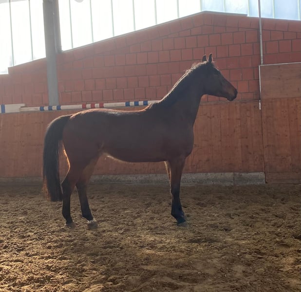 Typvoller, großrahmiger 4-jähriger Wallach von Charaktervoll HV x Colman Dieser ansprechende 4-jährige Wallach mit einem Stockmaß von 169 cm präsentiert sich als sympathisches Nachwuchspferd mit sehr angenehmem Charakter, guter Einstellung und unkomplizierter Art im täglichen Umgang. Beim Freispringen zeigt er bereits Vermögen, Übersicht und eine gute Manier und empfiehlt sich damit als interessantes Pferd für die weitere Ausbildung. Abstammung: Vater ist Charaktervoll HV, erfolgreich bis 1,45 m im Springsport, ein Sohn von Comme il Faut. Mütterlicherseits führt der Wallach über Colman (v. Carthago x Lord) wertvolle Holsteiner Leistungsgenetik. Die Mutter Donata I wurde mit der Bezirksprämie ausgezeichnet und stammt aus einer bewährten Familie mit erfolgreichen Springpferden bis 1,50 m in direkter Linie, darunter Elysee und Bleckert Boy. Das Pferd wurde 2024 vor der Aufstallung röntgenologisch untersucht und als gut befunden. Weitere Informationen oder Besichtigung gerne auf Anfrage.