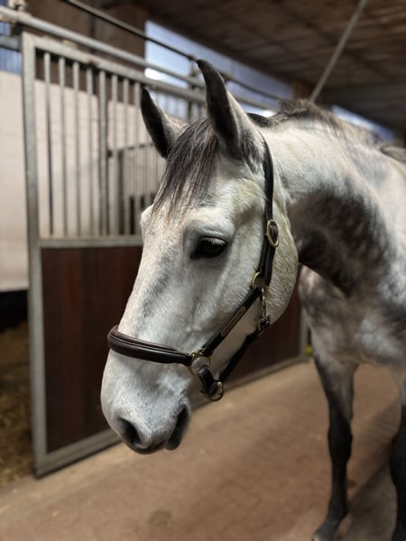 Deze prachtige grijze ruin overtuigt met veel intelligentie en een onberispelijk karakter. Hij is extreem lichtvoetig, wat niet alleen springen erg plezierig maakt, maar ook in de dagelijkse dressuur. Hij is bekend met buitenritten en toont daar eveneens zijn kalmte en zenuwsterkte. Wij zoeken een fijne, gevoelige ruiter of amazone die het leuk vindt om een jong paard met rust en geduld op te voeden. Bij interesse of vragen kunt u gerust contact opnemen: 01772409954