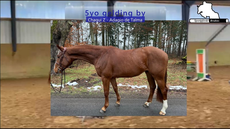 Sport Horses Bruhns: +49 173 / 75 82 768, www.sportpferde-bruhns.de, email: sportpferde.bruhns@aol.com Chaqui Adele, 5-year-old gelding by Chaqui Z out of Adagio de Talma, show jumping horse with up to 1.00 m level placings Further interesting links: Our sale horses: www.pferdeverkaufsmarkt.de