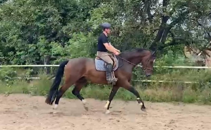Directly from the breeder, a 5-year-old Holsteiner gelding by "Van Gogh" out of a mare by Casall/Contender is being offered for sale. Standing at 17.5 hands, he provides a confident riding sensation for the rider. He is easy to bring into a frame and possesses a pleasant willingness to work. Thanks to his calm temperament, he is very straightforward in daily handling. He has also completed his first trail rides very calmly and confidently. He gets along very well with other horses. Unfortunately, he has a radiological finding in his tarsal joint.