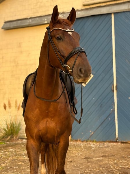 Platz vor Preis!!! Alter: 5 Jahre (2020) Größe: ca 1,75 m Abstammung: Florett Ass x Limbo Ausbildungsstand: Dressurpferde A siegreich, beginnend mit den Lektionen der Dressurpferde L, AKU: Röntgenbilder sowie eine Klinische vom Oktober ohne gravierende Befunde vorhanden. Zum Verkauf steht ein traumhaft schöner 5-jähriger Sohn des Florett Ass mit herausragender Qualität und bester Erfolgstatistik. Er überzeugt mit einem überragenden, taktsicheren Schritt mit enormem Übertritt, einer beeindruckenden Bergauf-Galoppade und einer ausdrucksstarken Trabmechanik. Er hat ein Herz aus Gold, ist im täglichen Training ebenso wie auf dem Turnier äußerst unkompliziert und brav. Dabei ist er sehr schön und einfach zu reiten. Aktuell befindet er sich auf dem Weg zur Klasse L. In Dressurpferdeprüfungen der Klasse A ist er mehrfach siegreich und hoch platziert mit Noten bis 8,3. Geht ebenso brav ins Gelände. Ein außergewöhnliches Nachwuchspferd mit exzellenter Qualität und erstklassigem Charakter. Unter Wert zu verkaufen da er einen Ton des Grades II hat, was ihn aber sportlich nicht beeinträchtigt. Ein Tuniervideo kann gerne über WhatsApp versendet werden. 0172/3423408