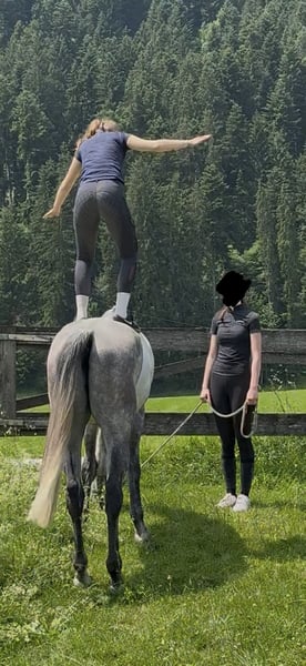 Crack HV x Baldini I x Capitol I Charlie ha un carattere d'oro ed è molto affettuoso, inoltre gode di un'ottima genealogia. È un giovane castrone dolce e gentile, che si comporta molto bene sotto la sella in tutte e tre le andature di base. Con cavalli sconosciuti si comporta con dolcezza; di recente ha lavorato anche con una ragazza di 13 anni. È molto attento alle mani del cavaliere, sempre desideroso di imparare e mai con cattive intenzioni. Anche in passeggiata in campagna si comporta in modo molto educato per la sua età; può essere portato a cavallo da solo o in gruppo, ed è abituato a conoscere gatti, cani, pecore e cervi. Le auto che passano, i trattori o simili non lo spaventano. Charlie è molto curioso e anche coraggioso, ma a volte ha ancora bisogno di un po’ di sicurezza da parte del cavaliere. È stato anche montato al salto e lo fa con dolcezza; il suo primo concorso è già in programma. Per la sua taglia, ho preferito prenderlo con calma, così da non sovraccaricarlo. Naturalmente, Charlie è stato regolarmente vaccinato e dewormed, e ha ricevuto cure da dentista e chiropratico. Charlie è tranquillo al trasporto e alla ferratura, anche se presenta il sindrome dello shivering alle zampe posteriori (che però non limita i suoi movimenti); può diventare un po’ impaziente durante la ferratura posteriore, ma mai cattivo, e ha già quattro ferrature. Se si mostra comprensivo, lo si può far fare tutto senza problemi. Anteriormente, ha una lieve deviazione a X delle gambe, ma anche questa non gli causa problemi.