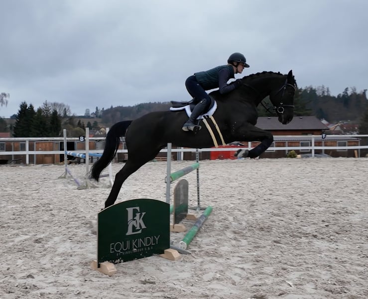 🖤 BARBIE'S BLACK DIAMOND?! 🖤 Oh yes... ~eyecatching~ is getting different dimensions with this beauty 😱 soo... 👀 *ALL EYES ON ME* 6yo gelding is ready to please his new pilot 🥰 With famous dressage names in his pedigree you are going to sit on the most rideable, versatile and laid back horse with super fancy trot and movement generally & easy changes.👌This guy has everything to please you in every single way - sweet character, can excell in every ring you step in, brave to the jump, perfect x-rays. Has shown in the dressage ring as well as in the amateur jumper classes. Interesting prospect for US rings too. No vices, no drama maker, 😍 loves to have attention. 16.1hh
