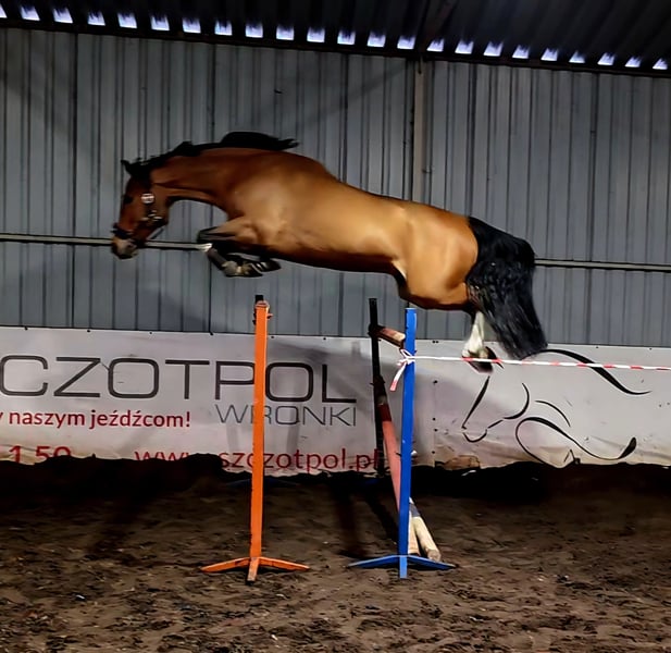 Młody poprawnie zbudowany bardzo ambitny i dokładny wałach. Doświadczony w zawodach do 125 cm rangi krajowej i międzynarodowej. W parkurze zaangażowany i bardzo dokładny. Ma bardzo dobre wyniki. Jeżdżony przez kobietę. Koń bardzo przyjazny, przewidywalny nie jest złośliwy. Łatwy w transporcie. Może być też koniem dla juniora.