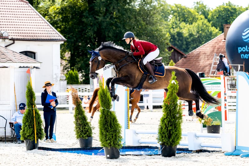 For sale: Holsteiner gelding, born in 2019, standing 16.1 hh. Sired by Gloria I (Hickstead x Cassini I), who successfully competes up to 145 cm. Excellent for show jumping, proven in training and competitions. Experienced in jumping at his age level of 135 cm. Eager to jump, ambitious, brave, with potential. Please contact me for additional information and to arrange a viewing. +48 881 215 990