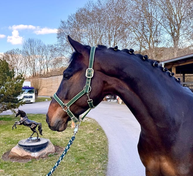 Top amateur horse with excellent riding qualities, a perfect canter at the jump, and the talent for the advanced level. He has been multiple times victorious in jumping competitions in class L (1.15m) and M (1.25m), with several placings. His pedigree features some of the elite bloodlines of show jumping breeding. Due to his good temperament, he is a horse suitable for the whole family and is sure to have a bright sporting future ahead. Phone: +49 (0)171 4605744