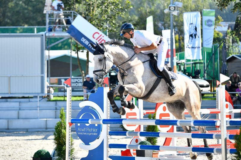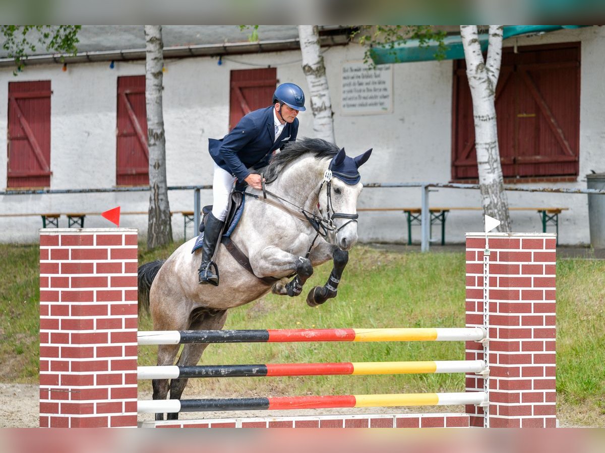 Vamos is a large-framed gray horse that rides exceptionally well and is very responsive. We bought him as a foal, raised him, and trained him. Everything around him works flawlessly (farrier, transport, veterinarian, trail rides, etc.). He definitely has the potential for advanced courses. He is suitable for handling by young riders and amateurs. Current X-rays are available without any objections.