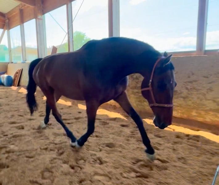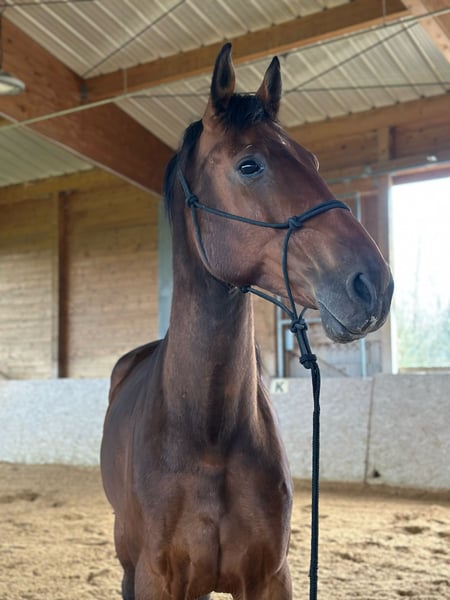Se vende aquí un caballo gelding holsteiner de 2017, Viola XLIII × Centimor. Datos importantes: - Camina descalzo (conoce también el uso de herraje parcial) - Necesita estar en paddock libre o en box con actividad (requiere movimiento, se muestra de nivel medio, pero con otros caballos castrados suele ser juguetón) - Aproximadamente 1,80 m de altura - Montado en libertad - Vacunado regularmente (última vez en 11/25) + desparasitado (última vez en 03/26) - Los dientes fueron revisados por última vez en 12/24 - Se maneja bien tanto solo como en compañía en el campo, aunque muestra un poco más de miedo cuando está solo - Muy sensible a las ayudas y con muchas ganas de aprender - En el suelo necesita una guía clara, no maneja bien comportamientos emocionales, al principio siempre está un poco inseguro y quiere agradar - Es un caballo muy cariñoso y mimoso, que a veces piensa que es un pony mini y puede sentarse en el regazo de "mamá", especialmente cuando tiene miedo. A veces ve fantasmas, pero con paciencia y tiempo se calma, en general es muy activo y necesita mucho ejercicio - La entrada en remolque depende del estado del día, a veces entra inmediatamente, otras veces tarda, lo que no le gusta en absoluto es la presión - Incluye accesorios (si se desea) - Existe la sospecha de ECVM, pero la veterinaria dice que aún así es apto para montar, aunque debe estar bien entrenado para ello -> radiografías de la columna cervical de 05/25 disponibles Actualmente, simplemente no tengo suficiente tiempo y energía para moverlo, le doy muy poca atención y me gustaría encontrarle alguien muy sensible, con experiencia y entendimiento en caballos. Por la falta de movimiento, no es posible realizar una prueba de monta, pero existe la opción de que esté en cuidado, en una futura participación en la monta o en un box con acceso a pasto. Con gusto puedo enviar videos de su trabajo en el picadero. No es una venta de emergencia, prioridad al espacio que al precio!