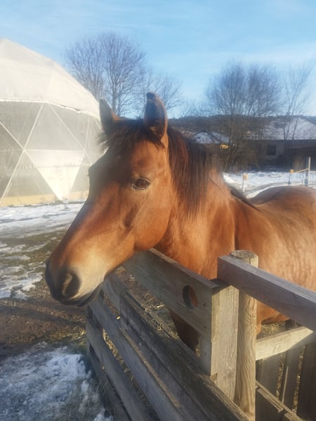 Zum Verkauf steht eine aufgeweckte, freundliche und neugierige Stute mit sehr gutem Charakter. Sie ist unkompliziert im täglichen Umgang, einfach zu händeln und stets brav bei allen Arbeiten rund ums Pferd. Die Stute arbeitet gerne mit, zeigt sich motiviert und verfügt über angenehme, komfortable Gänge. Sie ist trittsicher und eignet sich sehr gut für den Freizeitbereich. Auch erwachsene Reiter trägt sie problemlos. Nach einer längeren Pause benötigt sie aktuell nur noch etwas Training für den Rücken und Muskelaufbau in diesem Bereich, um wieder voll im Alltag anzukommen. Sie ist gesund und hat gesunde Beine. Krankheiten o. Ä. sind nicht Bekannt. Weitere Informationen sowie Besichtigung nach Absprache.
