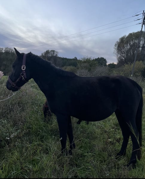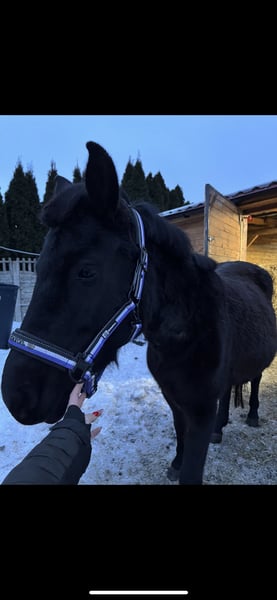 Witam, sprzedam/lub zamienię zgrabną i bardzo inteligentną klacz huculska Amelka (Goral). - ma 4 lata, ok.135 w kłębie, Prawidlowe kopyta, zdrowa, duża odporność - urodziła źrebaka 7 msc temu, przekazuje bardzo dobre geny i dobrą głowę, jest bardzo dobrą matką. Źrebak po niej jest elektryczny, ładny lekki ruch, bardzo skoczny, szukający kontaktu z ludźmi, gruba sierść, bardzo gęsta grzywa i ogon - na padoku bezproblemowa, unika sprzeczek -dostałam ją jak była w stanie surowym, nauczyłam ją całych podstaw -czyszczenie, podawanie kopyt, odczulanie, lonża, początki zajeżdżania, wyjazdów w teren - kobyłka jest elektryczna ale bardzo spokojna, na stanowisku można ją zostawić a ona będzie stać bez ruchu, na spacerach bardzo spokojna z ręką na sercu można dać dziecku i wiem że nic nie zrobi i będzie grzecznie szła ( u nas chodzi często jako koń czołowy ze względu na swoją odwagę i niepłochliwość), jest totalnie bombo odporna. Grzecznie chodzi na lonży, nie ma problemu z zakładaniem sprzętu, jest w trakcie zajeżdżania (póki co stęp i kłus) ale i tak przyjmuje niedoświadczonych jeźdźców - do każdego jest bardzo kochana i przyjazna - bardzo skoczna i szybka, kocha skakać. W korytarzu sama leci aby skoczyć (pierwszy raz w korytarzu skoczyła 85 cm z możliwościami na dużo więcej) bardzo dobra technika skoku. W przyszłości napewno dobrze się sprawdzi w skokach jak i zawodach - filmiki i zdjęcia wysyłam na Messenger lub Whatsapp, do wglądu również ruch źrebaka - sprzedaje z bólem serca ze względu na potrzebę czegoś większego - więcej info na pv, cena do lekkiej nego :)