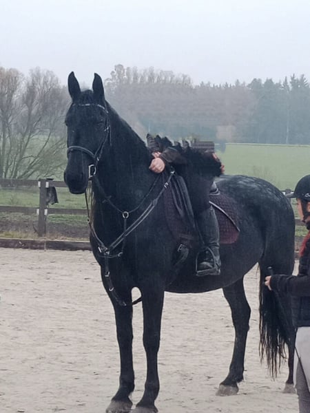 Ein charmanter, 8-jähriger Kladruber-Friesen-Wallach mit außergewöhnlichen Bewegungen und Charakter. Mit über 170 cm Stockmaß ist er kräftig gebaut und eignet sich auch hervorragend für einen Reiter. Er ist ein richtiges Kuscheltier, liebt den Kontakt zu Menschen und ist unkompliziert im Umgang mit Hufschmied und Tierarzt. Regelmäßig geimpft, entwurmt und beschlagen. Er ist ein vorwärtsgerichtetes Pferd, feinfühlig auf Hilfen und sanft im Maul. Er ist sehr angenehm und komfortabel zu reiten. Er trägt nicht, webt nicht und schluckt nicht. Er springt 70–80 cm. Seine gehobene Hinterhand macht ihn geeignet für Dressur und Fahrsport. Das Pferd befindet sich derzeit in Tschechien. Im Preis inbegriffen sind Zaumzeug, Vorderzeug und Sattel.
