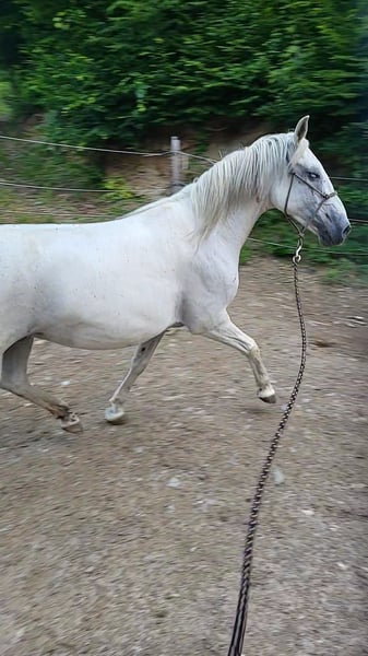 Z powodu okoliczności musimy sprzedać naszą 10-letnią klacz Lipizzaner. Jest w pełni surowa (!!) i wymaga pełnej samodzielnej tresury, dlatego też jest bardzo niewykorzystana. Do tej pory była wyłącznie klaczą hodowlaną aż do dwóch lat temu, kiedy to trafiła do nas przez przypadek. Ze względu na moją ciążę, którą dowiedziałam się tuż po zakupie, nie miałam czasu na jej szkolenie, a w najbliższym czasie spodziewamy się kolejnego potomstwa, więc sytuacja się nie zmieni w najbliższym czasie. Ma świetną rodowód i będzie również bardzo interesująca jako klacz hodowlana! U hodowcy znała chyba wszystko, co powinno znać każde konie, ale potem w Austrii coś poszło nie tak i musimy zaczynać niemal od początku. Mimo to, pracuje bardzo spokojnie i chętnie, jeśli z nią się coś robi, ale jest bardzo niepewna i ma ograniczone zaufanie do ludzi. Ze względu na jej "problem" oraz niską cenę!!, bardzo lubi być głaskana i czesana. Kto zna się na rzeczy i poświęci jej trochę czasu, może z niej szybko zrobić wspaniałego konia. Chętnie podam więcej szczegółów na zapytanie.
