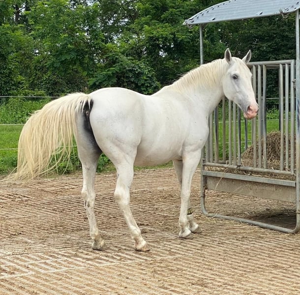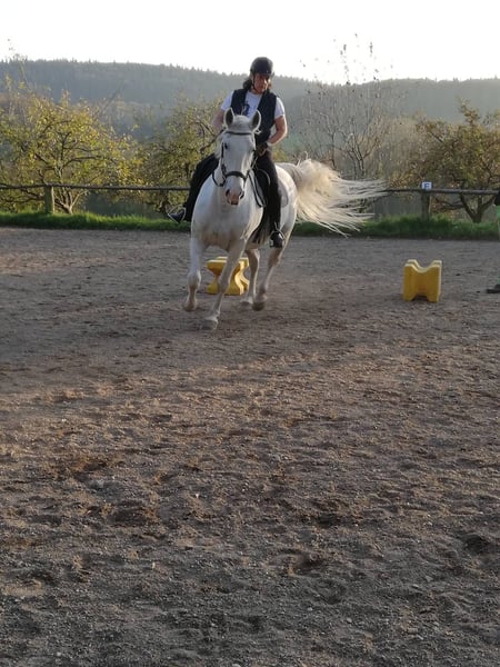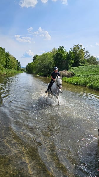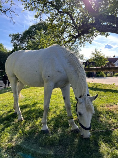 Centaura is very sensitive and intelligent and loves dressage tasks. She prefers clear and confident guidance. Due to time and family reasons, I am giving up riding. I have ridden Centaura recreationally and in dressage (L level), done a lot of groundwork and free work with her, and also prepared her for potential driving. She is very comfortable to sit on in all gaits. She is a very people-oriented horse and pleasant to handle, as well as highly motivated when it comes to new tasks. She is top-notch in terms of mobility. Lipizzaners are horses for advanced riders who are calm. Centaura is used to a mixed herd (mid-ranking) and all-day turnout. She is currently barefoot; in case of shoeing, front shoes would be advantageous. Quality over price!