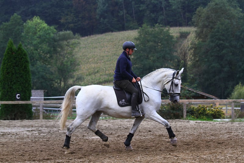 Maestoso Chiara es una impresionante y de gran tamaño yegua Lipizzana, que con sus 6 años se encuentra al inicio de su prometedora carrera. Educación: Ha sido montada recientemente y se muestra extremadamente dispuesta a aprender e inteligente. Trabajar con ella es muy divertido, ya que comprende rápidamente las conexiones y siempre está motivada. Fundamentos: Ya conoce la doble longe y está familiarizada con todos los manejos básicos. Tiene herraduras en las patas delanteras. Línea de sangre y potencial Su linaje sugiere un alto potencial tanto bajo la silla como en la conducción. Padre: Maestoso Baro (Caballo Lipizzano negro) Madre: Conversano XXIV-21 (Caballo Lipizzano negro) Línea de éxito: Su padre y su abuelo son exitosos en el deporte de la conducción FEI, lo que sugiere una fuerte constitución, voluntad de rendimiento y un temperamento equilibrado. Maestoso Chiara es un caballo para jinetes o conductores ambiciosos que buscan una yegua de alta calidad que puedan formar. Ideal para amantes de la raza y aquellos que desean desarrollar un caballo deportivo versátil.