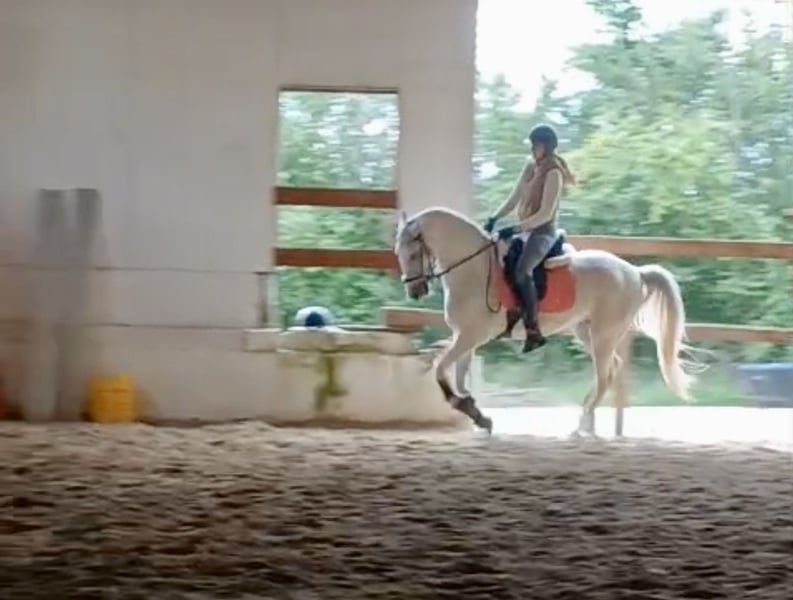 Imi ist ein 11 jähriger Lippizianer Wallach , der sowohl in der Dressur , im Parcours Springen wie auch an der Freiarbeit großen Spaß hat . Er liebt die Arbeit , ist dabei aber immer sehr gut händelbar und kann auch von nicht so starken Reitern gut geritten werden . Momentan läuft er wegen Zeitmangel durch meine Schwangerschaft. ( er ist mein Zweitpferd) in der Reitschule mit und zeigt sich dort sehr brav und motiviert .