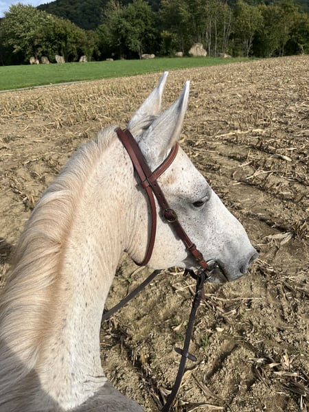 Hallo, Ich verkaufe meinen 13 Jährigen Wallach Sammy. Da wir leider in den letzten Jahren nicht richtig zueinander gefunden haben, habe ich mich nach langer Überlegung dazu entschlossen ihn zu Verkaufen. Er wurde bei mir hauptsächlich im Gelände geritten und auch ab und an in der Halle oder auf dem Platz. An Bodenarbeit und Freispringen hat er auch sehr viel Spaß. Ich habe mit ihm auch an Gelassenheitstraining teilgenommen bei dem er auch mit viel Motivation dabei war. Er braucht eine Erfahrene und ruhige Hand bei der er Sicherheit und Vertrauen bekommt. Daher ausschließlich an Erfahrene Reiter zu Verkaufen. Für Mehr Infos über Ihn gerne eine Nachricht schreiben. Er ist Kern Gesund und hatte bei mir noch keine Beschwerden. Er hat vorne Hufeisen. Im Sommer trägt er bei mir dauerhaft eine Fliegendecke. Bei mir lebt er im Offenstall. Er kommt super mit anderen Pferden klar und ist eher Rang hoch. Er fährt Hänger ohne Probleme und auch beim Hufschmied hatten wir nie Probleme. ( Ich habe ihn mit Westernsattel im Gelände und mit Dressursattel in der Halle geritten) Für weitere Infos schreibt mir gerne eine Nachricht. Der Preis ist VB. Ich bin für Angebote offen. Liebe Grüße Frida