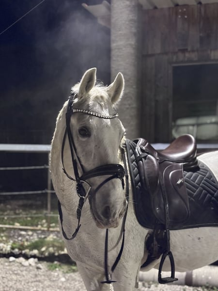 Incitato Dani, affectionately called Lippi by me, is a 2011-born Lipizzaner gelding. He is ridden recreationally on the riding arena and worked from the ground. He is not spooky at the riding arena and demonstrates a solid basic training. He particularly enjoys ground work and is always eager to learn new things. Occasionally, we also jump small obstacles, although we lack the experience and confidence for more advanced jumping. Currently, Lippi is kept in a paddock box and during the day, he goes out with his horse friends to a paddock or pasture. He is extremely social, loves to play with others, and gets along well with other horses. In the hierarchy, he tends to stay in the middle to lower ranks. Lippi has been regularly vaccinated, dewormed, and his teeth have been consistently checked and maintained. He is shod on all four hooves. During rides, Lippi can be a bit unsure and tends to follow other horses, but riding alone is also no problem. He is comfortable in water and loads onto the trailer willingly. Lippi needs a consistent handler he can trust. Once he has that, he will go through thick and thin with his person. Due to personal changes, I have decided to find him a new home. As he is very dear to me, the well-being of the horse takes priority over the price! He is not suitable for beginners, as he requires a confident handler to give him security. Lippi is being sold with all accessories (saddle, bridle, blankets, etc.). We look forward to meeting you!