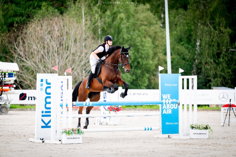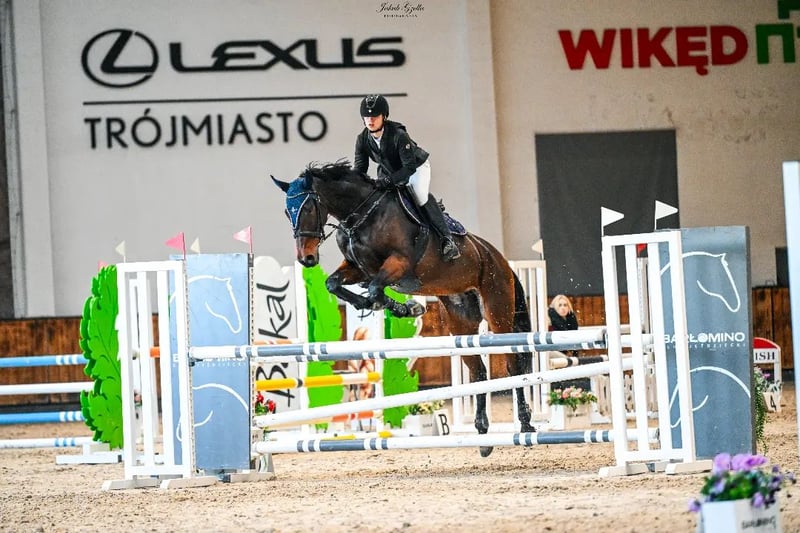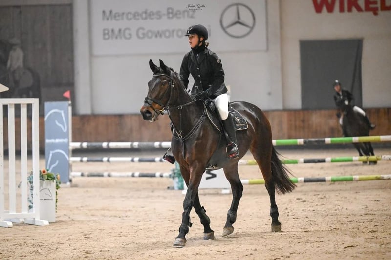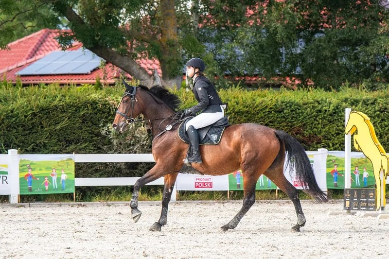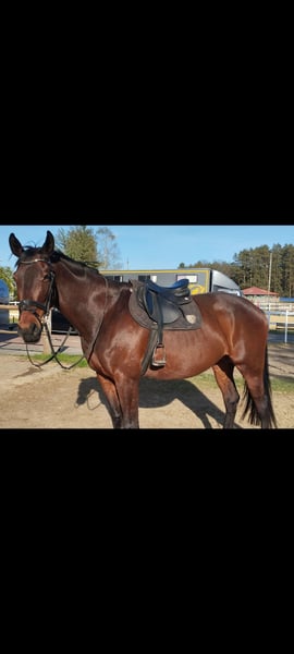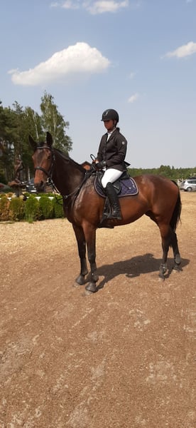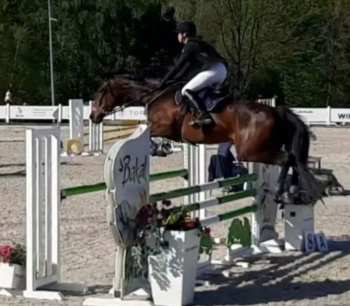 Na sprzedaż piękna, zadbana klacz małopolska, urodzona w 2014 roku. Wzrost 173 cm, gniada maść. Koń kuty na przód, wychodzący codziennie na pastwisko. Przyzwyczajony do samotnych terenów, psów oraz transportu. Koń dobry do skoków i WKKW. Klacz dużo potrafi i napewno mogłaby wprowadzić następnego jeźdźca w świat skoków i zawodów. Idealna dla osoby stabilnej w siodle, chcącej mieć dobrego konia na początek przygody z zawodami. Koń startował do konkursów klasy P włącznie, w domu naskakany do 120/125 cm. Stale w treningu, trudne kombinacje czy gimnastyki nie stanowią dla niej problemu. Chciałabym żeby Kobyłka przysłużyła się komuś tak jak mi i spełniała kolejne marzenia młodzieży 😉 Koń ma badania do wglądu