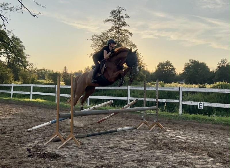 Walach rasy małopolskiej urodzony 08.11.2015 r. po ogierze Justus, od klaczy Dropia. Potomstwo ogiera Justus cechuje się bardzo dobrą użytkowością - daje konie rosłe, odważne, jezdne, dobre ruchowo i skokowo, poprawne eksterierowo. Disney to ambitny walach ze sportowym zacięciem, bardzo dobrze ujeżdżony, z dobrym, obszernym ruchem, naskakany do 100 cm pod amatorem, ma potencjał na więcej. Przeszkody, podmurówki, straszaki nie robią na nim wrażenia, skacze wszystko, zawsze po drugiej stronie przeszkody. Robi ustępowania, łopatki, lotne zmiany nóg. Jest po startach w zawodach skokowych oraz ujeżdżeniowych. Na wyjazdach opanowany. Bezproblemowy w transporcie: w przyczepie i koniowozie. Aktualnie w treningu skokowym. Stoi na wybiegu pod stajnią, na noc sprowadzany do boksu. Regularnie werkowany, szczepiony i odrobaczany. Kuty na przody. W obejściu koń jest wymagający, raczej nie dla dziecka. Potrzebuje osoby, która pewnie czuje się w pracy z ziemi, potrafi stawiać granice i nie boi się koni z charakterem. Sprzedaż tylko w dobre i doświadczone ręce. Cena do negocjacji.