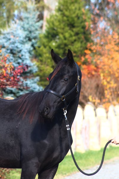 For sale 3 yo lovely gelding in jet black color He is by Emark - amazing black dressage polish stallion, compete in high level. (last picture) Also many more best Anglo Arabian horses such as Jalienny , Efekt, Veritas etc...in the pedigree. Grandsire The Anglo Arab stallion All That Jazz was imported to Biddesden from Victoria in Australia as a colt. His sire is the Arab stallion SS City Lights who was bred in the USA and nearly 16 hands. His dam is Belingo, an Australian Thoroughbred by Saulingo. Jazz was always a tall colt with great scope to his stride. He has the softest and springiest of canters as all who have been lucky enough to ride him will attest. He was taken through the ranks to advanced level in British Eventing by William Fox-Pitt and went hunting for a season with the South and West Wilts. His foals have been successful in the show ring and have made a promising start in eventing, with their big strides and elegant steady head positions. Also australian, both arabian and thouroughbred horses are well known and appreciated for their hardness and durability and have achieved many successes in international endurance ! LORENZO AA is Of exceptional beauty , long-legged and well built, with elastic and extensive movement. Long neck, beautiful subtle head. He is now 172 cm high at 3 yo cm, and final estimate height about 175+ cm !!! Born and raised on big meadows, pastured every day with a group of youngsters. He has exceptional fantastic character, absolutely people oriented, very friendly and calm. Interesting for sport or leisure rides . Full pedigree, e-pass, vaccinated, dewormed etc. Located western Poland near PL/D border . Price + 8% VAT Price will increase once he will be started under the saddle. Transport can be arranged . Contact by WhatsApp + 48 513 179 245