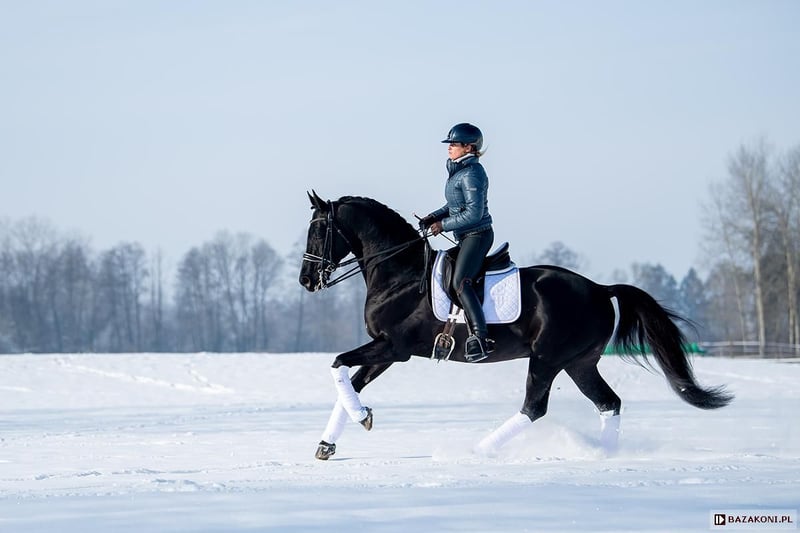 For sale: 2.5-year-old lovely black gelding He is by Emark – an outstanding black dressage Polish stallion competing at a high level (see last picture). His pedigree also includes many top Anglo-Arabian horses such as Jalienny, Efekt, Veritas, and others. His grandsire, the Anglo-Arabian stallion All That Jazz, was imported to Biddesden from Victoria, Australia, as a colt. His sire is the Arabian stallion SS City Lights, bred in the USA and nearly 16 hands tall. His dam is Belingo, an Australian Thoroughbred by Saulingo. Jazz has always been a tall colt with excellent scope in his stride. He possesses the softest and springiest canter, as anyone fortunate enough to ride him will confirm. He advanced through the ranks to the advanced level in British Eventing under William Fox-P-Pitt and has hunted for a season with South and West Wilts. His foals have been successful in the show ring and have made a promising start in eventing, thanks to their large strides and elegant, steady head positions. Both Australian Arabian and Thoroughbred horses are well known and appreciated for their resilience and durability, achieving many successes in international endurance competitions. LORENZO AA is of exceptional beauty, with long legs, a well-built frame, and elastic, extensive movement. He has a long neck and a beautiful, subtle head. Currently, he stands at 172 cm at 2.5 years old, with an estimated final height of over 176 cm! Born and raised on large pastures, he has been turned out daily with a group of youngsters. He has an outstanding character—absolutely people-oriented, very friendly, and calm. Suitable for sport or leisure riding. Complete pedigree, e-pass, vaccinated, dewormed, etc. He will be sold ONLY TO THE BEST HOME! Located in western Poland near the Poland/Germany border. This price is valid until the end of 2025. Price + 8% VAT Transport arrangements can be made. Contact via WhatsApp: +48 513 179 245