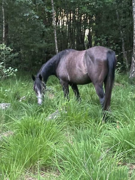 For sale: a Małopolska breed gelding, born on March 1, 2022. The horse is healthy, developing normally, with harmonious conformation and an attractive appearance. He has a pedigree that allows for further sport and recreational use. He was raised in proper conditions, regularly vetted, dewormed, and well cared for in every aspect. Currently standing at 15.5 hh, but still growing due to his age. Grot is a young horse, but exceptionally well-balanced. He features a calm, friendly temperament and a strong willingness to cooperate. He enjoys human contact, is gentle, open, and easy to handle. A horse that easily builds relationships, does not react impulsively, and behaves predictably in new situations. This is a partner suitable for an ambitious amateur or someone planning further sport training, especially in jumping, where he shows significant potential (approaching 120 cm in a schooling environment). He is ready to begin breaking-in. Currently: - Walks correctly on a lunge in all three gaits, - Maintains rhythm and focus, - Calmly accepts legs for grooming and riding, - Knows basic care and handling routines, - Responds very well to bathing and grooming procedures. The horse has been prepared with attention to proper foundational work, is attentive, quick to learn, and shows no resistance to new stimuli. He promises to be an easy horse to further train. Sire: Figlarz (by Emetyt) Dam: Gryta (by Piorunek) The sire, Figlarz, is a highly regarded stallion both in competition and breeding. He competed in young horse jumping events, then continued his career in classes P and N. Known for his excellent jumping style, confidence over fences, and stable work in the arena, he was an efficient, flexible horse with correct technique and high work ethic. He proved suitable for both professionals and experienced amateurs. In breeding, he consistently passed on correct conformation, a good back, a sensible temperament, and athletic predispositions. His offspring have often been evaluated as promising sport horses. More photos available privately. Please contact us to view him in person.