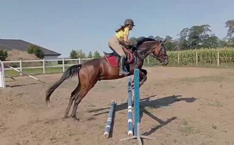 Herkules Koń zajeżdżony w maju. Zdrowy, odważny, poprawnie zbudowany, wałach. Bardzo szybko się uczy. Koń nie, tka nie i łyka, nigdy nie było z nim problemów zdrowotnych. Przygotowywany do pierwszych startów w zawodach. Szczepiony, odrobaczany, kuty na przodu w sezonie letnim. U mnie w stadzie od odsadka.