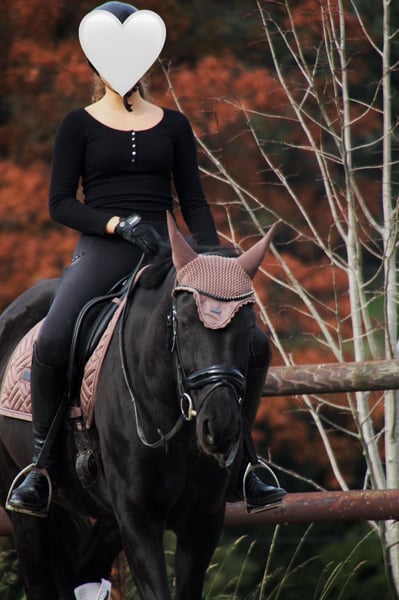 Our beautiful ten-year-old black mare is, with a heavy heart, looking for a new home. Mirabell is a horse that gives everything for her person and strives with all her soul to please her rider. That’s why we wish for someone who approaches her with love, calmness, and experience, and gives her the attention she deserves. Mirabell is a sensitive, strong-willed mare who picks up on her rider's mood very accurately. With a calm and experienced person by her side, she shows herself to be motivated, cooperative, and full of joy – a horse that would go through fire for the right person. She particularly enjoys jumping and has a lot of potential in this discipline; in dressage, she is steadily developing and is additionally worked on once a week by an experienced rider for corrections. She is also a reliable companion in the outdoors, going along calmly, and she responds very well to lunging. She hasn’t really gained much competition experience yet, as it hasn’t been possible for us time-wise – however, she has the abilities for it. Mirabell prefers to be in an open stable with plenty of movement, but she also copes well with box housing and regular turnout. She is currently in an all-mare herd. She is barefoot, well-behaved with the farrier, loads easily into a trailer, and is, of course, well cared for: regularly dewormed, vaccinated, and her teeth are also checked regularly. In everyday life, Mirabell is uncomplicated – she willingly gives her hooves, allows herself to be tied and groomed, and loves spending time with her person. It is especially nice that she enjoys being petted and cuddled. As she is sensitive and takes on her rider's mood, Mirabell is not suitable for beginners! Her future rider should weigh no more than 70 kg and be willing to approach her with calmness, patience, and experience. For us, the right home is more important than anything else – therefore, it is clear: home before price. To ensure that only serious interest exists, we charge €20 for trial riding, which will, of course, be deducted from the purchase price. We will only let Mirabell go to the best hands and wish for someone who loves her just as much as we do. For serious inquiries, we are happy to send videos and further information – and we hope that she will soon find the person with whom she can share her heart.