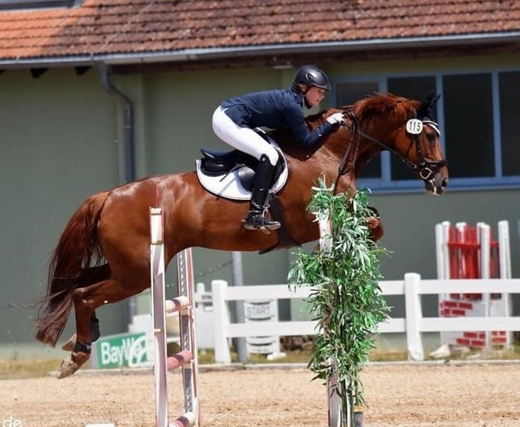 Our 12-year-old Mecklenburg mare Daysy S by D'Olympic x Solar is for sale. At the age of 5 she took part in the Bundeschampionat for eventing horses with good results. She was then successfully shown by amateur and young riders up to elementary class (dressage + show jumping), as well as CNC2* + CC|* Intro. Daysy and her rider were members of the Mecklenburg-Vorpommen state squad. In this context, she took part in the Golden Sash and the National Young Rider Championships. Daysy always wants to go to the other side in cross-country/jumping and has never had a stall in cross-country. She is also suitable for weaker/anxious riders. Due to an injury, Daysy had a 1.5 year break from competitions, during which she gave birth to a prize-winning colt (2023) by Cabalu, which can be seen in the last pictures. The injury has healed completely. Daysy is currently placed in VA, A-jumping and has won A-dressage. (With amateur) FEI passport available. Videos on request Please inquire via WhatsApp: +49 173 8587683