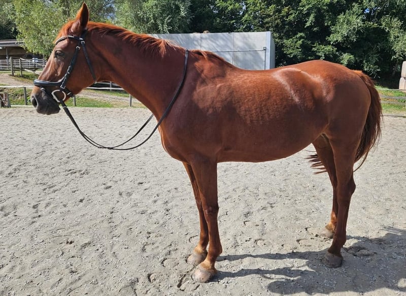Wir verkaufen unsere 12jährige Mecklenburger Stute Daysy S als Zuchtstute. Aufgrund einer älteren Verletzung wird sie als bedingt reitbar verkauft! Daysy war 5-jährig Teilnehmerin am Bundeschampionat der Vielseitigkeitspferde und kann zahlreiche Platzierungen in allen Sparten bis zur Klasse L aufweisen. Sie ist eingetragene Zuchtstute und brachte 2023 ihr erstes Fohlen (prämiert, Elitefohlen) von Cabalu (Landgestüt Redefin) problemlos zur Welt. Anständig im Umgang ,sowie herdenverträglich. Abstammung: D‘Olympic x Solar FEI-Pass vorhanden. Videos auf Anfrage Anfragen bitte über WhatsApp: +49 173 8587683