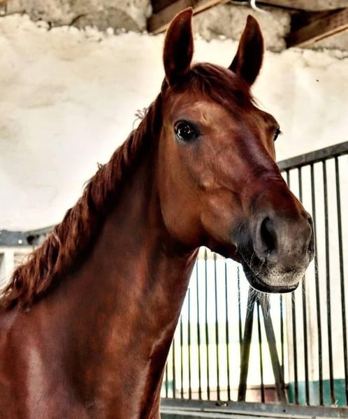 Nasza 12-letnia meklemburska klacz Daysy S po D'Olympic x Solar jest na sprzedaż. Jako 5-latka wzięła udział w Bundeschampionacie dla koni rajdowych z dobrymi wynikami. Następnie była z powodzeniem pokazywana przez amatorów i młodych jeźdźców do klasy podstawowej (ujeżdżenie + skoki przez przeszkody), a także CNC2* + CC|* Intro. Daysy i jej jeździec byli członkami reprezentacji Meklemburgii-Pomorza Przedniego. W tym kontekście brała udział w zawodach Golden Sash i National Young Rider Championships. Daysy zawsze chce przejść na drugą stronę w crossie/skokach i nigdy nie miała stajni w crossie. Nadaje się również dla słabszych/niepokornych jeźdźców. Z powodu kontuzji Daysy miała półtoraroczną przerwę w startach, podczas której urodziła nagradzanego ogierka (2023) po Cabalu, którego można zobaczyć na ostatnich zdjęciach. Kontuzja jest już całkowicie wyleczona. Daysy jest obecnie sklasyfikowana w VA, A-jumping i wygrała A-dressage. (Z amatorem) Dostępny paszport FEI. Filmy na życzenie Prosimy o kontakt przez WhatsApp: +49 173 8587683