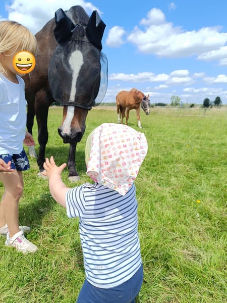 Milly ist eine 19 jährige, treue Seele und hat einen unbezahlbaren Charakter. Sie lebt bei uns als volles Familienmitglied und ist auch sehr auf unsere Kinder fixiert. Ich trenne mich nur schweren Herzens und nach sehr langer Überlegung, aus privaten Gründen von ihr. Sie eignet sich super als Familienpferd, Freizeitpferd oder auch zum Wiedereinstiegs-/Anfängerpferd. Wenn Milly einmal Vertrauen zum Reiter gefasst hat, macht sie fast alles mit. Sie geht alle Gangarten brav im Gelände und auf dem Platz - sowohl alleine, als auch in der Gruppe - , sie ist außerdem absolut schmiede- und verladefromm. In der Herde ist sie auch sehr sozial und bisher haben wir noch kein Pferd kennengelernt, mit dem sie sich nicht verstanden hat. Wir haben Milly zu Coronazeiten aus einem Schulpferdebetrieb übernommen, in dem sie einige Jahre sehr treu und brav vielen Kindern und Erwachsenen das Reiten beigebracht hat. Aufgrund eines Sehnenschadens wurde sie dort verkauft. Der wurde bei uns komplett auskuriert und sie ist seit dem bei uns im vollen Freizeitberitt. Ursprünglich war sie als Zuchtstute gedacht und wurde mit der Staatsprämie gekört und hat ein gesundes Fohlen zur Welt gebracht. Sie wird nur in aller beste Hände abgegeben und auch nicht nach dem ersten Kontakt mitgenommen. Ein Schulpferdebetrieb kommt nicht in Frage. Bei ernsthaften Interesse,ist ein Probereiten jederzeit möglich. Platz vor Preis.