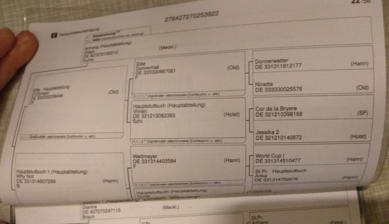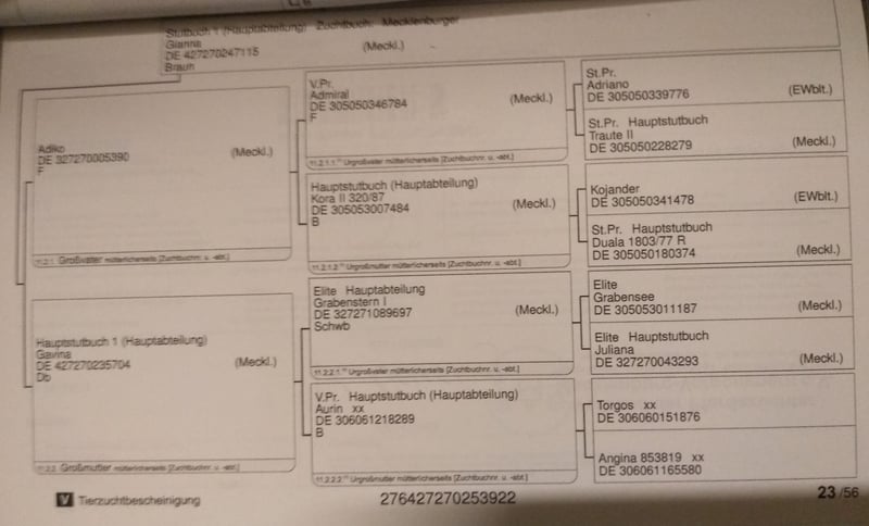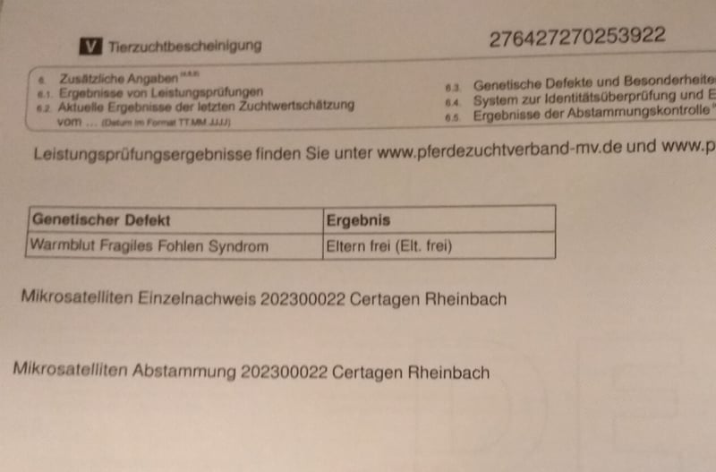 Due to her good pedigree, you can expect more from her and she will certainly achieve great things with the right person. She also impresses with her beauty and compact build. The expected final height is 1.70m. Her parents are both at the stables and can also be presented.