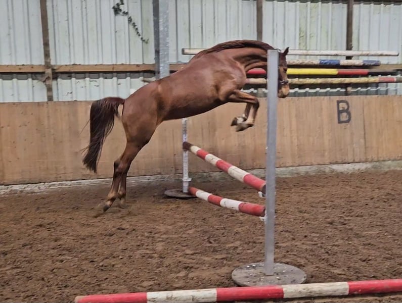 5-jarige, ongeveer 161 cm grote merrie van Sanches RT (v. Special Effekt x Incolor x Levantos) x Condelaro (v. Contender) x Sandro Song x Almeo. Smira is vrij slank en heeft een volbloedtype, ze heeft zeer goede basisgangen. Ze is braaf in de omgang, hoefsmid- en transportvriendelijk, zeer intelligent, moedig en nieuwsgierig. Ze heeft plezier in vrijspringen en het werken met stangen. Ze springt een kleine parcours en toont zich daarbij zeer geconcentreerd en betrokken. Ze staat nog aan het begin van haar opleiding en is onder het zadel moeilijk. Ze test haar ruiter steeds weer, daarom is ze niet geschikt voor beginners. Omdat ze helaas te sterk voor mij is, moet ik haar verkopen. Om deze reden en vanwege een schoonheidsfout (grote litteken op het polsgewricht), wordt ze ver onder waarde aangeboden. Prijs in overleg bij snelle afhandeling.