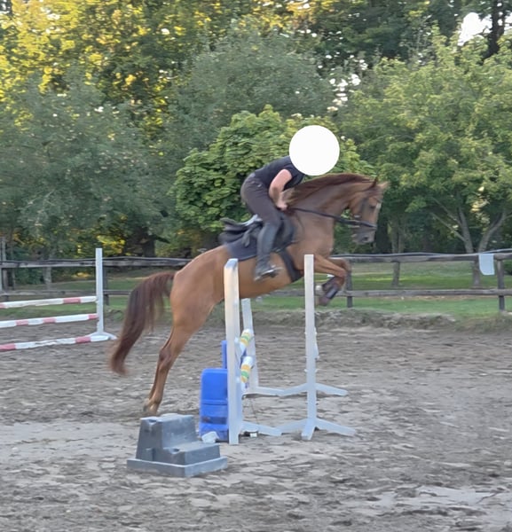 5-year-old mare, approximately 161 cm tall, by Sanches RT (by Special Effekt x Incolor x Levantos) x Condelaro (by Contender) x Sandro Song x Almeo. Smira is rather slim and has a thoroughbred type, she has very good basic gaits. She is well-behaved in handling, shoeing, and loading, very intelligent, brave, and curious. She enjoys free jumping and pole work. She jumps a small course and shows great concentration and engagement. She is still at the very beginning of her training and is challenging under saddle. She tests her rider repeatedly, therefore she is not suitable for beginners. Unfortunately, she is too strong for me, so I have to part with her. For this reason, and due to a cosmetic flaw (large scar on the carpal joint), she will be sold well below value. Price negotiable with quick processing.
