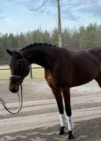 Zum Verkauf steht eine 5-jährige, ca. 1,70 m große Zuchtstute, eingetragen im Stutbuch I. Abstammend von Desperados & Finest. Sie hatte im April 2025 ein gesundes Stutfohlen zur Welt gebracht. In dieser Zeit zeigte sie sich auch absolut unkompliziert im Umgang - das Trennen von ihr und dem Fohlen verlief immer problemlos. Die Stute geht auf den Anhänger/Transporter, kennt die Führanlage, ist regelmäßig beim Schmied, Zähne wurden gemacht, Herpes, Influenza, Tetanus geimpft .Turnierpferdeeintragung vorhanden. Geht spazieren, joggen, läuft am Fahrrad mit. Keine Krankheiten. Bei ernsthaftem Interesse gerne weitere Infos / Videos per Nachricht.