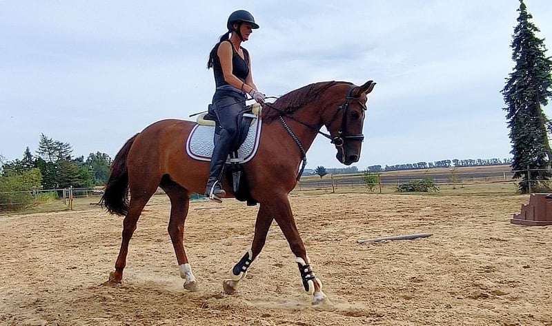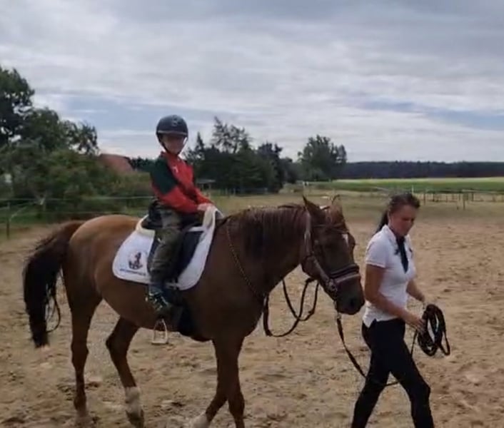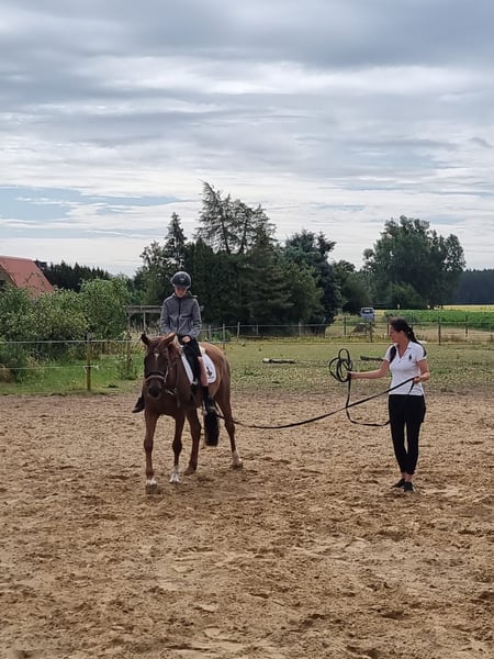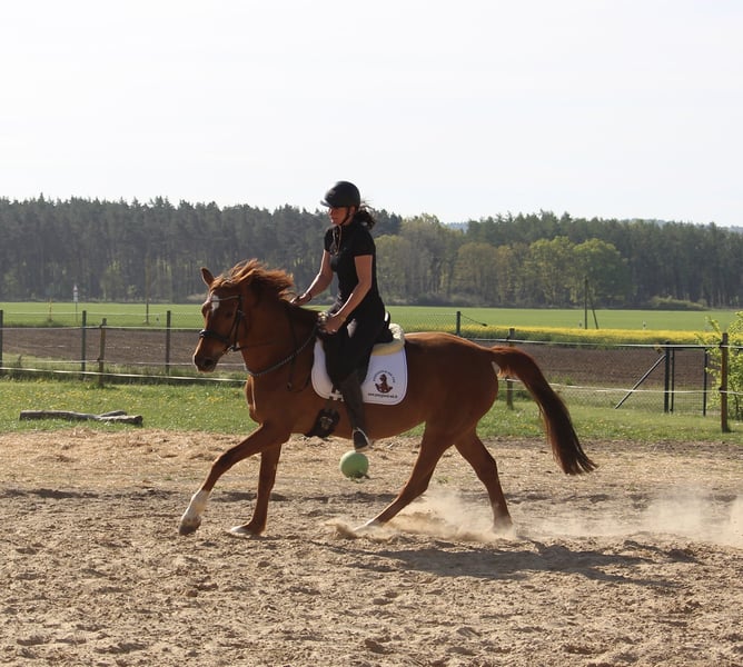 Tolle junge Stute von Balou Peggio zu verkaufen. Unsere Püppi kann bestens mit Kindern, ist körperlich eingeschränkte Reiter gewohnt und passt auf ihren Reiter auf. Ich habe sie selbst vierjährig schonend angeritten, danach hatte sie fast zwei Jahren Pause (ich selbst bin leider schwer erkrankt). Nun ist sie seit etwa drei Monaten wieder unterm Sattel und zeigt sich stets mutig, mitarbeitsbereit und brav. Sie ist stutentypisch manchmal etwas dominant, passt sich aber liebvoll an ihren Menschenpartner an. Man kann sie bedenkenlos anbinden und noch schnell was holen, sie wartet brav. Auch nach Wochen Pause ist sie immer lieb. Trotzdem ist die junge Dame nichts für reine Anfänger, sie hat schon Go. Mich hat sie aus dem Rollstuhl zurück in den Sattel geholt und ist auch ohne reiterliche Hilfen auf Stimme in allen Gangarten reitbar. Sobald man den Steigbügel verliert bleibt sie stehen... Kinder von 7-13 Jahren haben sie schon frei geritten, dabei ist sie immer äußerst vorsichtig und achtsam. Ich wünsche mir ein Zuhause mit einer, maximal zwei Bezugspersonen die sie weiterhin genau so sanft reiten, wie ich und die diese Stute mit Potential gerne weiter ausbilden möchten. Sie lernt unglaublich gerne und schnell. Ich möchte das sie viel raus kommt und dies vor allem mit Artgenossen. Hier ist sie nachts Box gewöhnt. Ich habe keine Not sie zu verkaufen, trotzdem ist mir ein gutes Zuhause wichtiger als der Preis. Wenn gewünscht nimmt sie ihr komplettes Zubehör mit. Bitte beachten. Preis steigt bei weiterer Ausbildung. Videos vom reiten gerne auf Anfrage